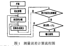 對特定的渦輪流量計(jì)和不同的脈動(dòng)流,可編程計(jì)算出式(2)在脈動(dòng)周期內(nèi)各離散點(diǎn)所對應(yīng)的ω(t),據(jù)此可計(jì)算出渦輪流量計(jì)測量誤差E。其流程圖如圖1所示。