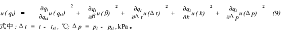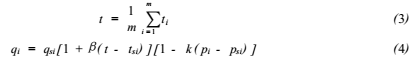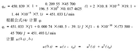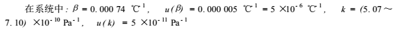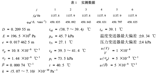 式中:t所有校準(zhǔn)點(diǎn)在流量計(jì)處流體溫度的平均值,℃;m被校流量計(jì)的流量校準(zhǔn)點(diǎn)數(shù)目;ti*i校準(zhǔn)點(diǎn)在流量計(jì)處的流體溫度的平均值,℃;qi*i校準(zhǔn)點(diǎn)被校流量計(jì)的實(shí)際流量,L/min;β流體的體積膨脹系數(shù),℃^-1;k流體的壓縮系數(shù),Pa^-1;pi*i校準(zhǔn)點(diǎn)在流量計(jì)處的流體表壓力的平均值,Pa。