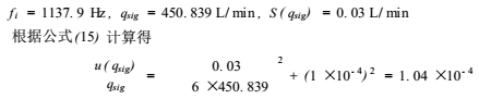式中:q(fi)用*小二乘法公式計(jì)算出的*i校準(zhǔn)點(diǎn)的頻率fi所對(duì)應(yīng)的流量值,L/min。