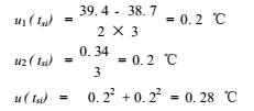 u(t)與u(tsi)的計(jì)算方法相似,它也包含測(cè)溫變送器的測(cè)量不確定度和被校流量計(jì)處紅油溫度的變化所引起的測(cè)量不確定度