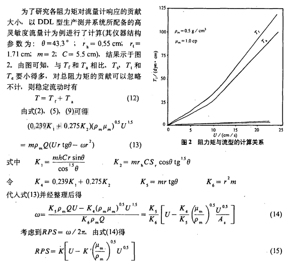 摘要:多相生產(chǎn)井中,油、氣、水的密度和流速、粘度分布不均勻,生產(chǎn)測井時渦輪流量計所測的RPS值波動幅度大,導致所確定總流量誤差增大??紤]葉片頂端與邊沿阻力矩及粘度、流速的影響,提出了渦輪流量計在多相流動中的響應方程。計算表明,葉輪表面,軸承外表面阻力起主導作用,RPS值主要取決于局部流速和動力粘度的變化。基于所給出的響應方程和實驗結(jié)果,建議在多相流動中測量分層總產(chǎn)量時采用集流型渦輪流量計。