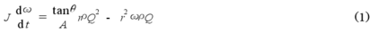 式中J為葉片轉(zhuǎn)動(dòng)慣量,θ為葉與軸線之間的夾角,r?yàn)闇u輪葉片的平均半徑,A為管道流量面積,ρ為流體密度,ω為渦輪的旋轉(zhuǎn)角加速度,Q為通過管道的流量。