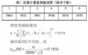 輸入量Ni的不確定度來(lái)源主要是流量計(jì)測(cè)量的不重復(fù)性,采用A類(lèi)評(píng)定方法評(píng)定。
