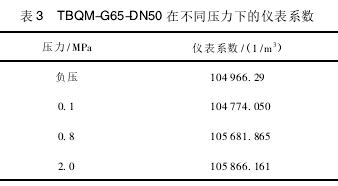 計算所得的不同壓力下儀表系數(shù)如表3和表4所示。