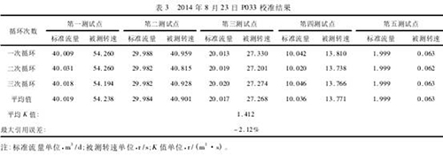 注:標(biāo)準(zhǔn)流量單位,m3/d;被測轉(zhuǎn)速單位,r/s;K值單位,r/(m2?s)。
