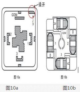 *先將豪斯曼接頭上部的螺絲松開(kāi)拔下接頭部分,接頭部分結(jié)構(gòu)如圖10a所示,從缺口處撬開(kāi)接線端子,接線端子如圖10b所示。