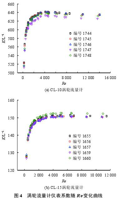 3.2 儀表系數(shù)與雷諾數(shù)關系