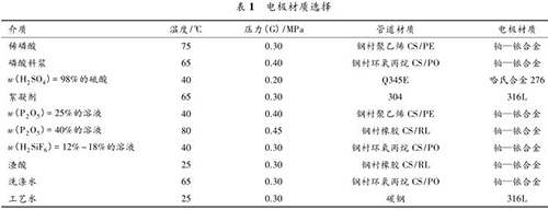 國內某 300 kt/a 磷酸裝置中,含有不同溫度、不同壓力、不同濃度的多種酸液,包括:稀磷酸、濃硫酸、磷酸料漿、絮凝劑、P 2 O 5 溶液、H 2 SiF 6 溶液、渣酸、洗滌水、酸性循環(huán)水、工藝水等。如此復雜的工藝介質對流量計的選型要求很高,酸液的配比、濃度、溫度、雜質、溶解氣體以及流速等都會影響接液材質的耐腐蝕性。