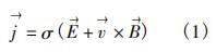 式中j→為電流密度矢量,為通過(guò)液體單位面積的電流,A/m2;E→為電場(chǎng)強(qiáng)度矢量,V/m;v→為流體速度,m/s;B→為磁感應(yīng)強(qiáng)度,T。當(dāng)激勵(lì)電流角頻率ω不大時(shí),流體中的位移電流完全可以忽略,即
