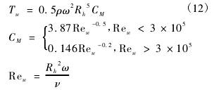 根據(jù)同軸圓筒黏性阻力矩計(jì)算方法可得軸承黏性阻力矩Tb
