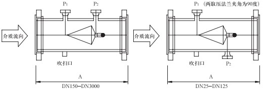 取壓口法蘭公稱直徑(標(biāo)準(zhǔn)設(shè)計(jì))為DN40,也可以依據(jù)用戶要求選取法蘭直徑。