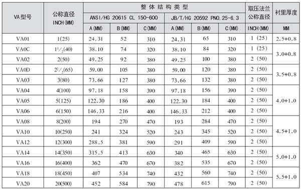 2.尺寸表中同一欄值有兩個(gè)并以/隔開,表示/下方的數(shù)值是以HG管法蘭尺寸計(jì)算所得。