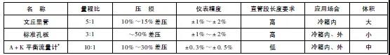 空分設備低溫液體流量的測量從原理上來分,有差壓式流量計、渦街流量計、科里奧利質(zhì)量流量計等。但由于低溫液體特性及各方面外在因素的影響,流量計在測量過程中或多或少會存在著一些問題,需要引起重視。差壓式流量計的性能比較見表1。