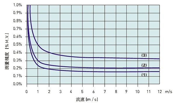 污泥流量計(jì)實(shí)質(zhì)是測量介質(zhì)的流速,它是速度式流量計(jì)。一般電磁流量計(jì)推薦流速在0.3m/s-5m/s,在這個(gè)范圍內(nèi),流量計(jì)測量精度高、線性好、水力損耗小、介質(zhì)對流量計(jì)傳感器襯里和電*的磨損也較小。以某品*電磁流量計(jì)選型樣本提供的流速曲線為例(見圖3),可以看出流量越小、流速越慢,測量誤差越大,曲線在0.3m/s處存在拐點(diǎn)。