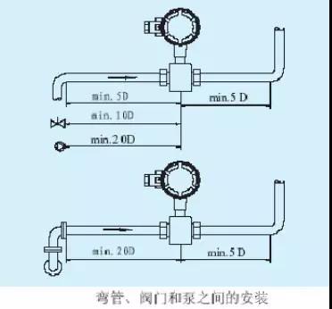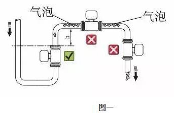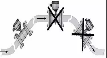 當(dāng)出口為放空狀態(tài)時,傳感器不應(yīng)安裝在管道放空之處,應(yīng)安裝在較低處。傳感器安裝在管道下方處時,應(yīng)保證傳感器內(nèi)被液體充滿,不能出現(xiàn)空管狀態(tài)。