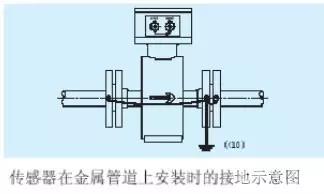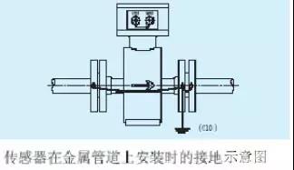 傳感器在金屬管道上安裝(金屬管道內(nèi)壁沒有絕緣涂層),按下圖接地。