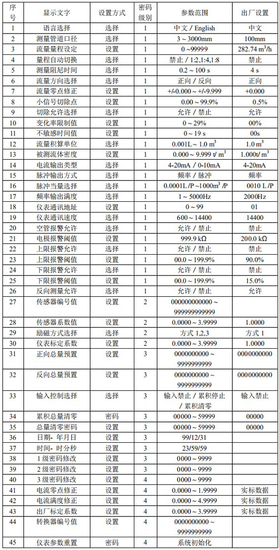 儀表參數(shù)決定儀表的運行狀態(tài)、計算方法、輸出方式。正確地選用和設置儀表參數(shù),可使儀表運行在*佳狀態(tài),能得到較高的測量顯示精度和測量輸出精度。