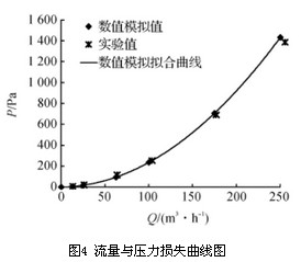 根據(jù)圖4中壓力損失隨流量的變化趨勢,可以將流量與壓力損失之間的關(guān)系擬合曲線為二次多項式,其表達(dá)式為