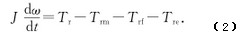 式(2)中:J—葉輪的轉(zhuǎn)動慣量;t—時間;ω—葉輪的轉(zhuǎn)速;Tr—推動力矩;Trm—機械摩擦阻力矩;Trf—流動阻力矩;Tre—電磁阻力矩。