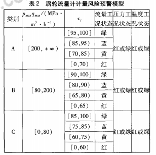 ③確立報警后的處理等級。渦輪流量計計量風險預警模型按pmaxqmax的大小將客戶流量計分為3類,其中A類(重點客戶)、B類(主要客戶)兩類為重點監(jiān)測項目,要求處理等級與信息反饋速度比C類(普通客戶)高。這種分類方法突出了計量管理重點,確立了調配有限資源的指導方針。